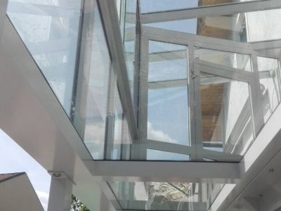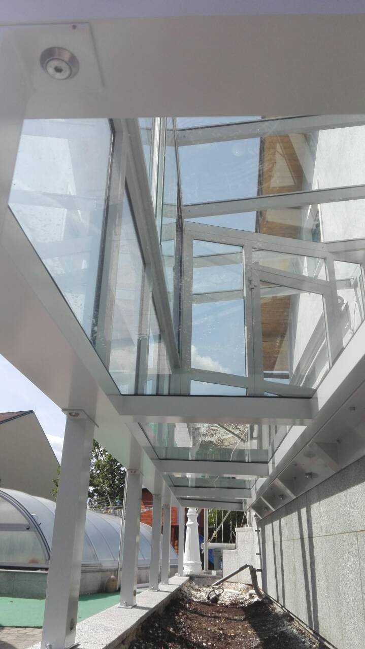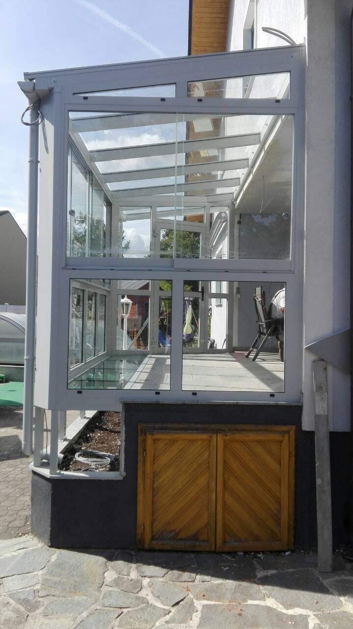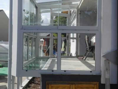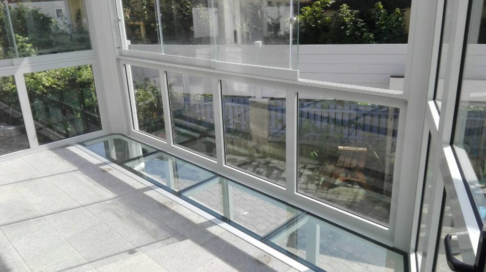 Dieser Sommergarten ist deshalb sehr speziell, weil wir die Terasse erweitert haben mit begehbares Glas uns diese Lösung wurde in den Sommergarten integriert.