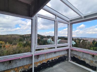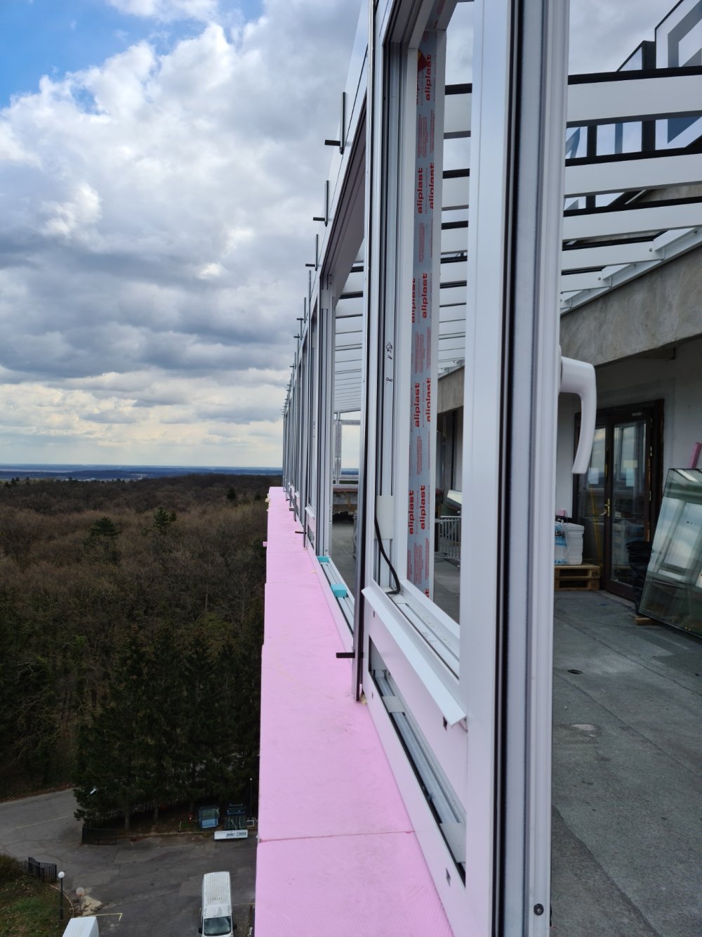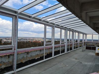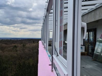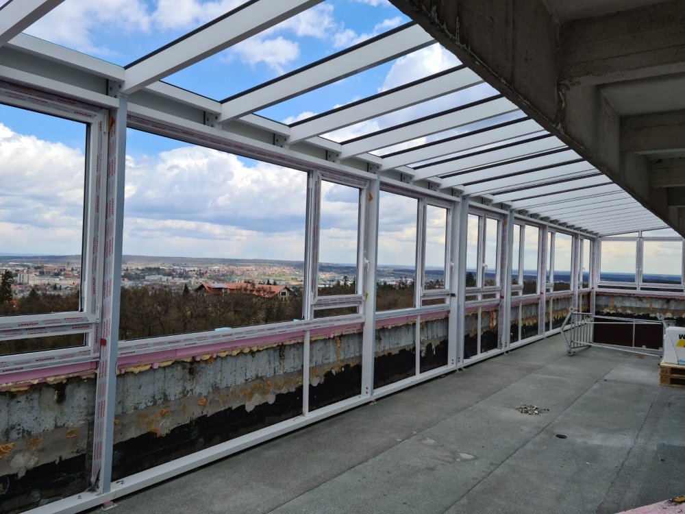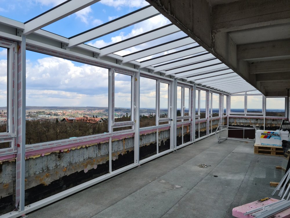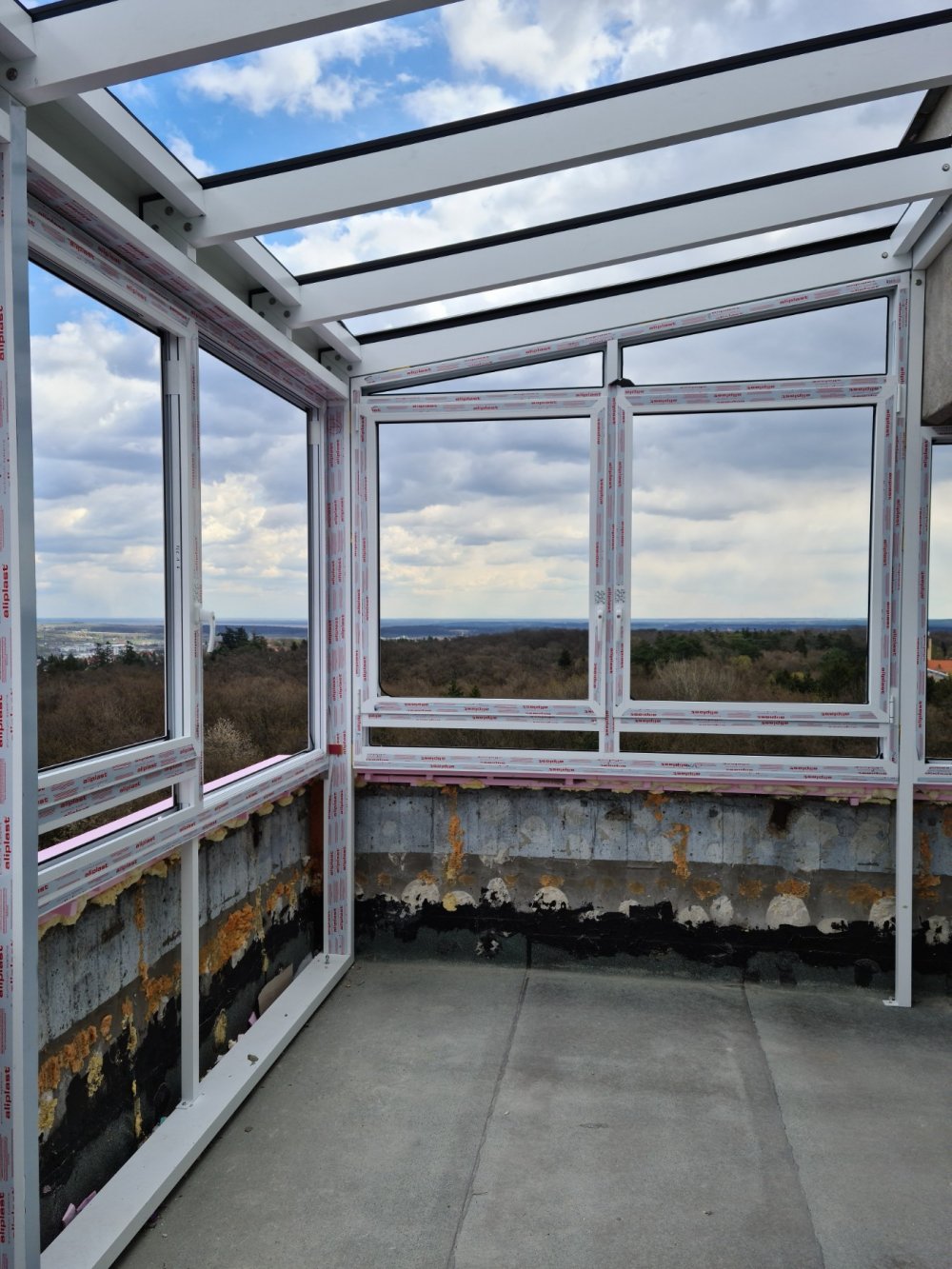 Individuelle Terassenverbau im Hohen. Egal ob es sich um ein Einfamilienhaus oder Wohnblock sich handelt, wir finden für Sie die optimale Lösung. Mit die von uns geplante Konstruktion kann der Kunden nicht nur an zusätzlichen Wohnraum gewinnen sondern noch dazu diesen einmaligen Ausblick den ganzen Jahr unabhängig vom Wetter genießen. Dank der professionellen Pulverbeschichtungsprozess wird die Farbe trotz extremen Sonnenstrahlen langlebig sein.Perfekt geplantes Element auf die Form der Terasse.