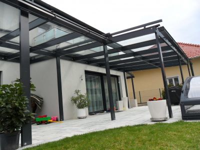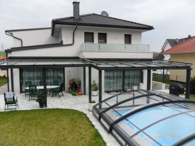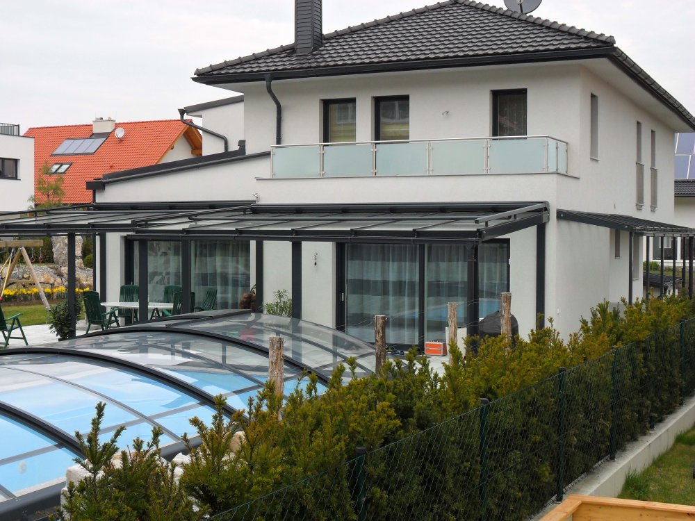 Terrassenüberdachung für Pool und Haus , Stiegenabgang Überdachung