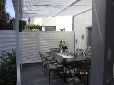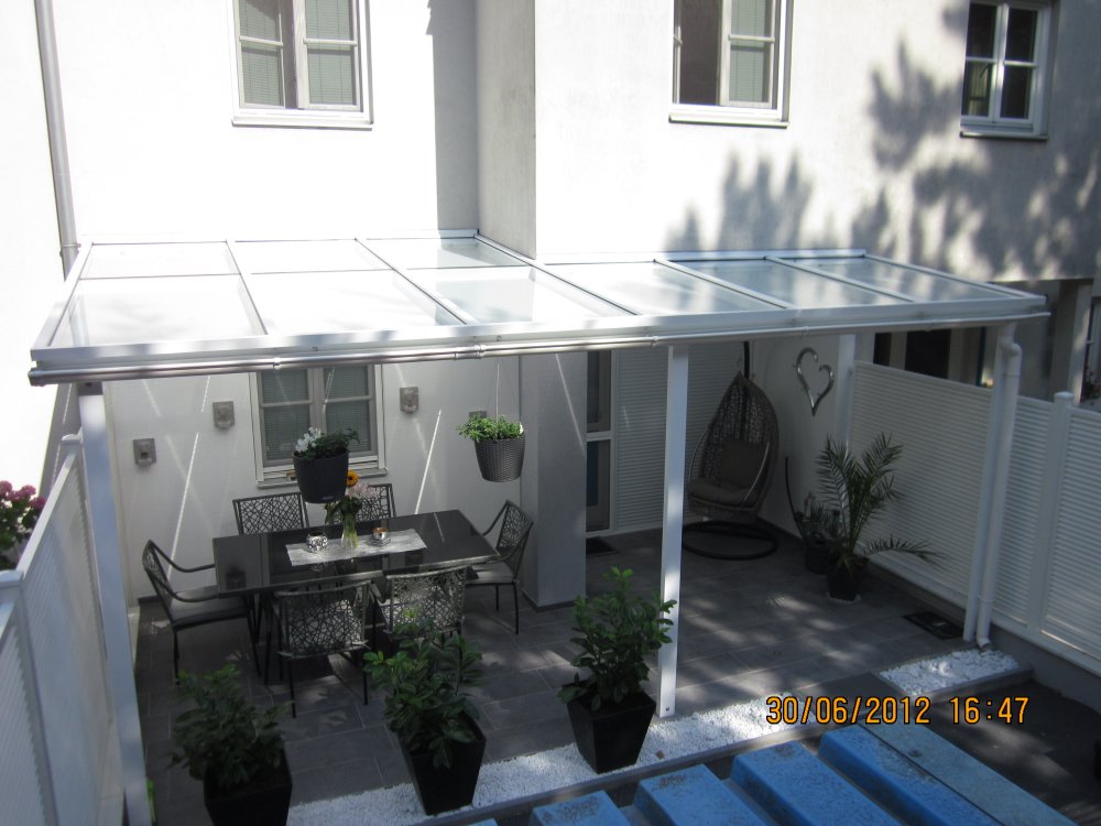 Terrassenüberedachung mit Plisse Dachbeschattung, eigerichted mit Still