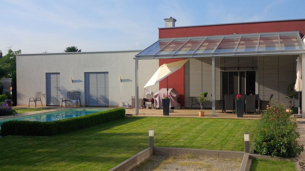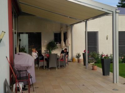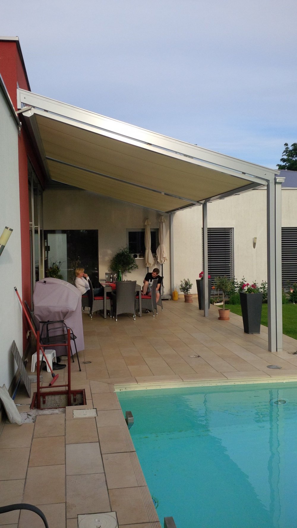 Bei dieser Überdachung war die Herosferderung die Größe und dass unser Kunde keine Steher hinten bei der Mauerbereich haben wollte. Aber unsere Techniker haben mit gründlichen Planung , berechnung der statik eine Lösung gefunden und damit konnten wir den Kundenwunsch verwirklichen. Damit die Überdachung auch im Sommer sich nicht zu sehr aufwärmt wurde noch eine Unterglasmarkise eingebaut.